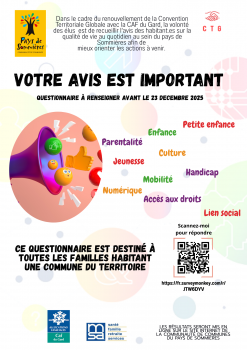 Ce questionnaire est destiné à toute famille habitant une commune du Pays de Sommières : donnez votre avis et partagez vos suggestions sur la petite enfance, l’enfance, la jeunesse, le handicap, la parentalité, l’accès aux droits, le numérique, la culture, la mobilité.