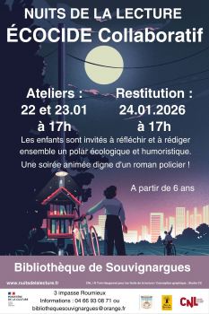 Vous êtes ici : Accueil > Dans le cadre des nuits de la lecture Ecocide collaboratif en Janvier Bibliothèque Souvignargues
