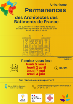 Vous êtes ici : Accueil > PERMANENCES DE L'ARCHITECTE DES BATIMENTS DE FRANCE